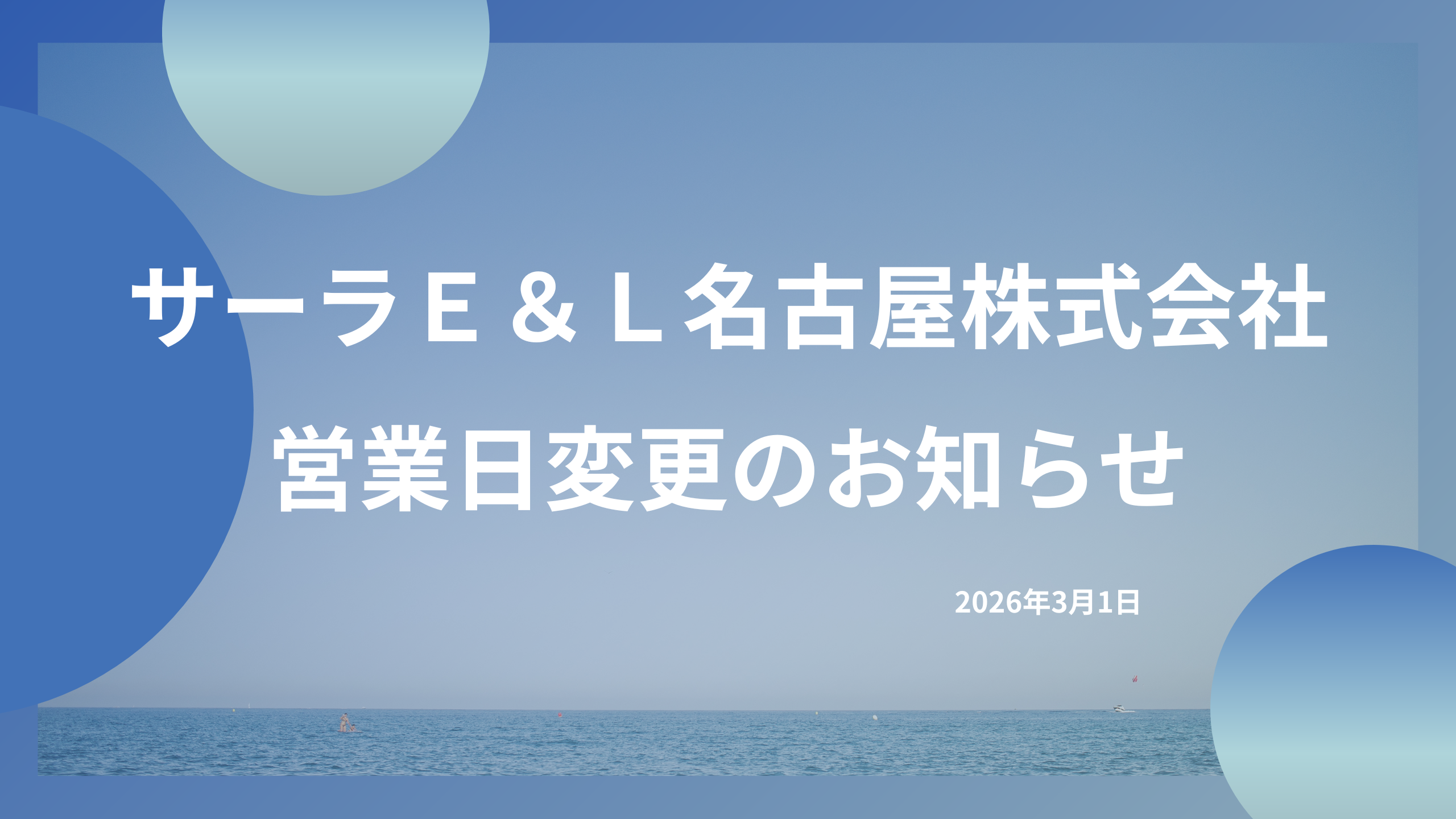 さて、この度サーラE&L名古屋株式会社では、さらなるサービス品質の向上とお客さまニーズへの対応を目指し、各営業所の営業日を下記の通り変更することといたしました。