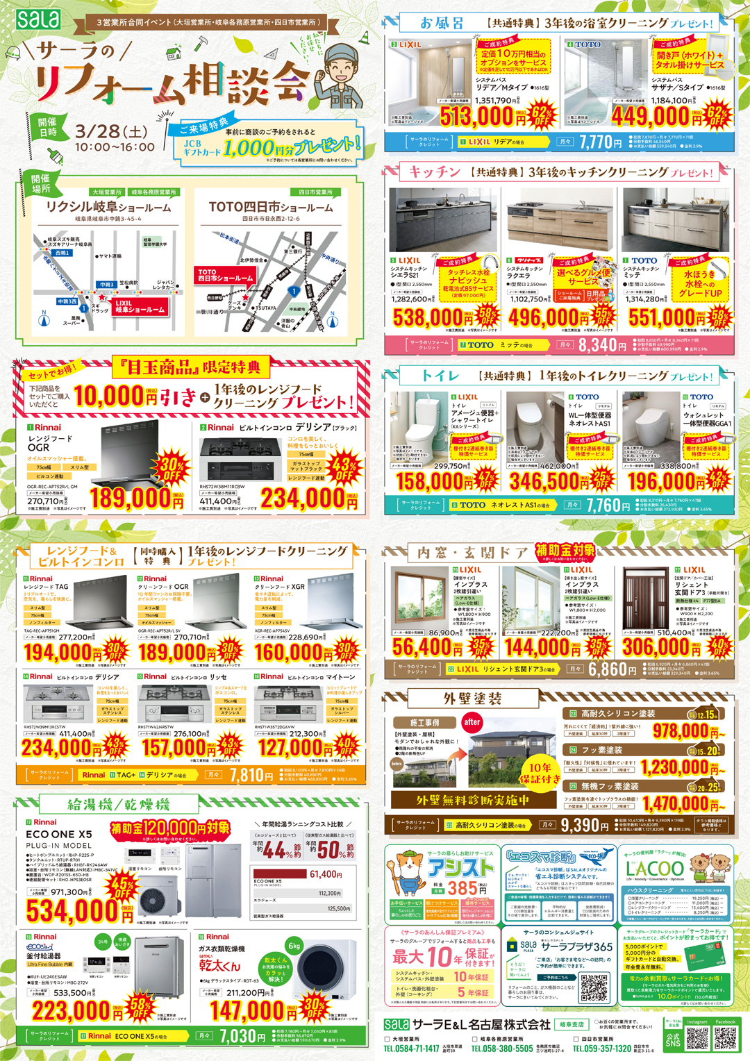 | お問い合わせ | サーラE&L名古屋株式会社 大垣営業所 0584-71-1417 岐阜各務原営業所 058-380-5505 四日市営業所 059-357-1320 |
