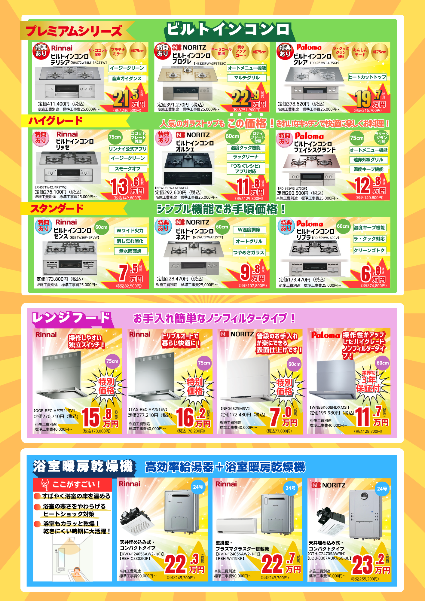 Rinnai 天井埋込型:22.3万円 (税込245,300円)〜よくあるご質問・お問い合わせ